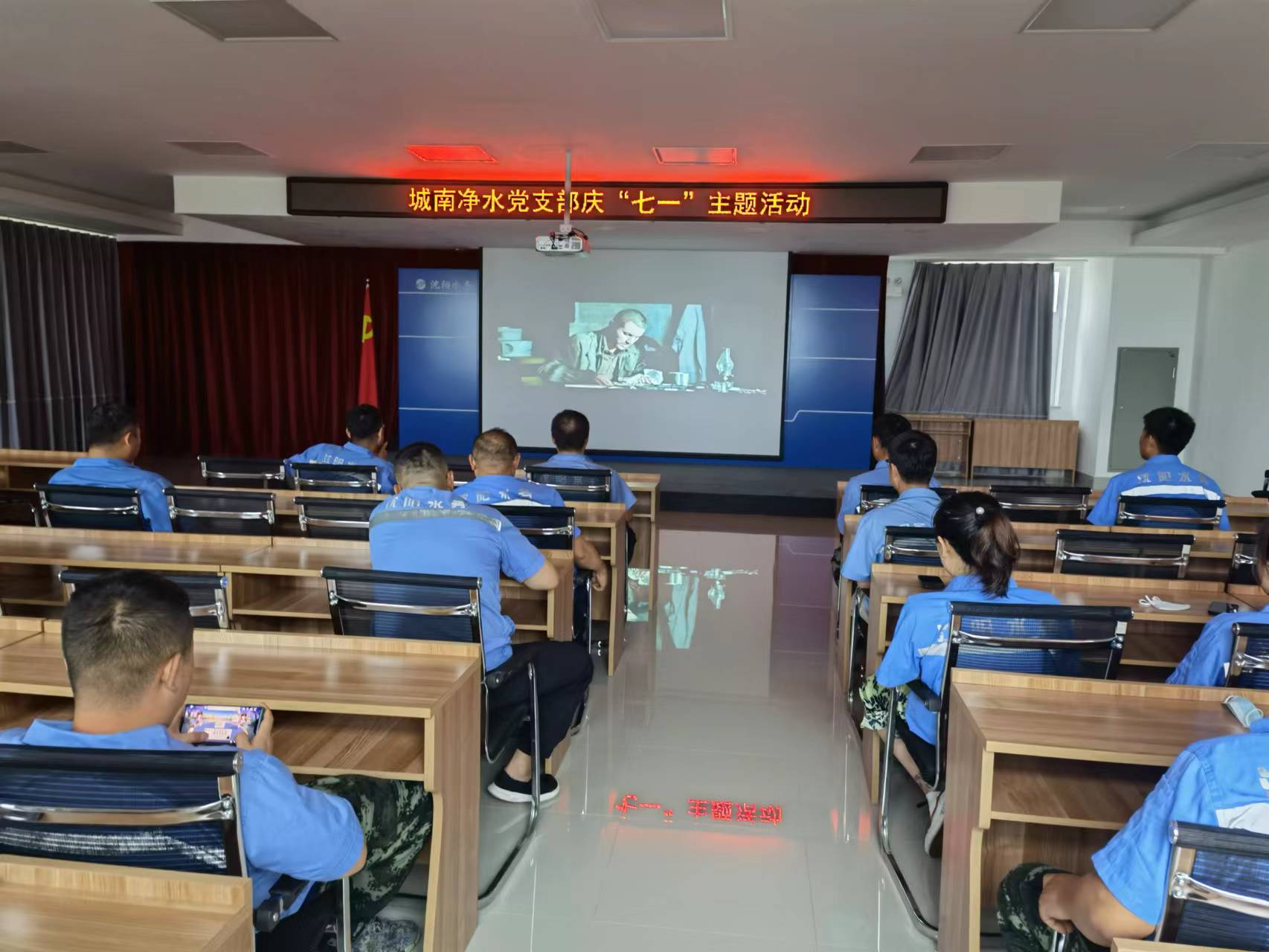 7月1日下午,城南净水党支部组织全体党员开展庆“七一”主题活动,以党的十九届六中全会及习近平总书记系列重要讲话精神为指导,首先由支部书记马悦带领全体党员重温入党誓词,时刻警醒自己记初心、守初心、永葆共产党员的政治本色。接着,全体党员观看爱国主义影片《狙击手》,重温共产党人在风雨飘摇的时代中建党建国的艰辛与不易,缅怀革命先辈,追忆他们为民族解放,国家复兴所做的牺牲和奉献,弘扬爱党爱国敬业精神。进一步激发广大党员爱党爱国热情。铭记党的历史,讴歌党的光辉历程,发扬党的优良传统和作风,严守党的纪律、保持党的先进性和政治责任感。弘扬爱党爱国敬业精神。